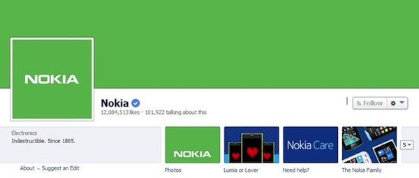 Trong một động thái chưa có tiền lệ trước đây, trên trang Facebook của mình, Nokiađã chuyển mọi phông nền sang màu xanh lá cây thay vì màu xanh dương truyền thống.